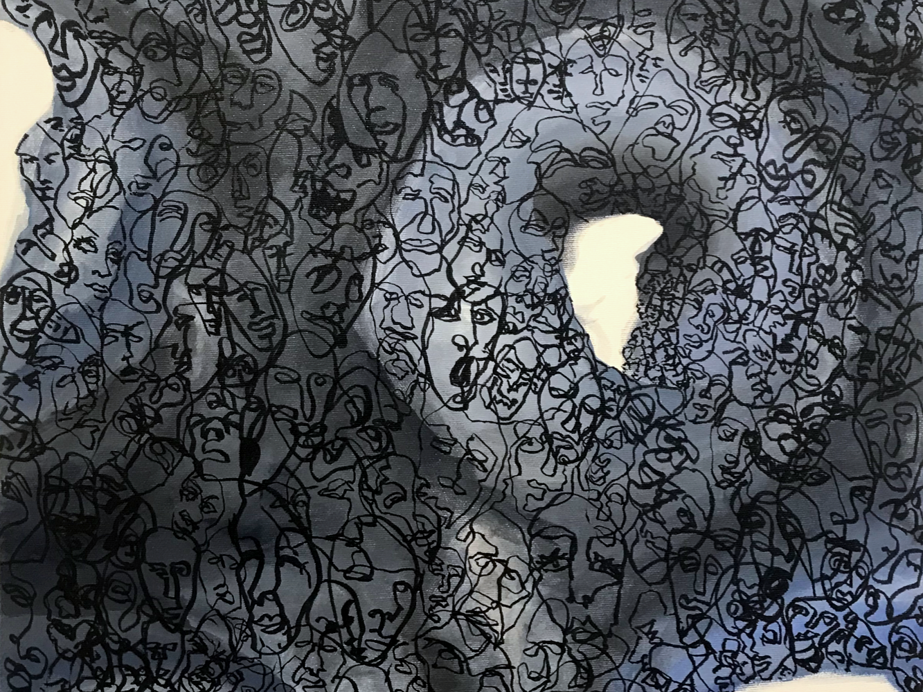 The installation, entitled Backstage, presents an interesting juxtaposition of materials and forms that invites us to reflect on the nature of art and its relationship to the physical world. The installation captures the viewer in a moment where painting is transformed into the form of an installation.On the one hand we have jute, a natural fiber that is coarse and unrefined and reminiscent of the organic materials from which all things in the physical world are ultimately derived. The jute is attached to the wall and thus creates a stable, fixed point in the room, which anchors the installation in the world of material objects.On the other hand, we have a picture frame that is a work of art in itself, carefully crafted to hold and display the picture. The subframe is placed inside the jute, creating a tension between the rough, natural material and the carefully crafted shape of the subframe. This tension emphasizes the interplay between nature and art, suggesting that they are not necessarily antagonistic, but rather exist in a complex and dynamic relationship.Together, the installation encourages us to think about the nature of art and its relationship to the physical world. It suggests that art is not a separate realm, separate from the material world, but rather closely related to it.